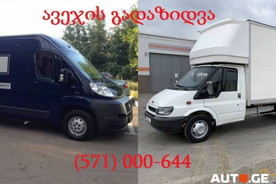 ავეჯისა და ტვირთის გადაზიდვა თბილისსა და საქართველოს მაშტაბით. ნებისმიერი ტვირთი შეღავათიან ფასებში.გვყავს მუშებიც.შეკვეთები მიიღება 24 საათის განმავლობაშიავეჯის დაშლა-აწყობასეიფის გადატანაპიანინო როიალის გადატანაპირველი FIAT DUCATOსიგრძე:3 მსიმაღლე:1.97 მმეორე FORD TRANSIT ამწე-ლიფტიანი!!საკონტაქტო ტელეფონი:571-000-644მანქანაში ეტევა 10 ევროპალეტი!!!მანქანის ბუტკის სიგრძე:4.30 მ სიმაღლე:2.30 მ სიგანე:2.20 მ