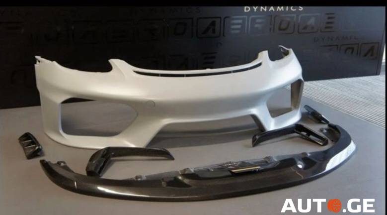 AERO წინა სპოილერი წინა სპოილერით Porsche 718 Cayman და Boxster (982) 718 GT4 სტილში - მთლიანად ნახშირბადისგან დამზადებული! წინა ბამპერი წინა სპოილერით ერგება Boxster და Cayman 718 (982) ყველა მოდელს ტოპ მოდელის 718 GT4-ის სტილში. წინა ბამპერი მთლიანად დამზადებულია ნახშირბადისგან, მზად არის მანქანის ფერში შეღებვისთვის. წინა სპოილერი და წინა წინსაფარი მთლიანად დამზადებულია ნახშირბადის ბოჭკოსგან