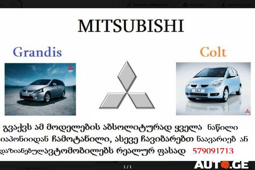 ვარკეთილში, გვაქვს მიცუბიში კოლტის და გრანდისის ნაწილები ორიგინალი იაპონური ცხვირების. გვაქვს თითქმის ყველა დეტალი. 579091713 ირაკლი