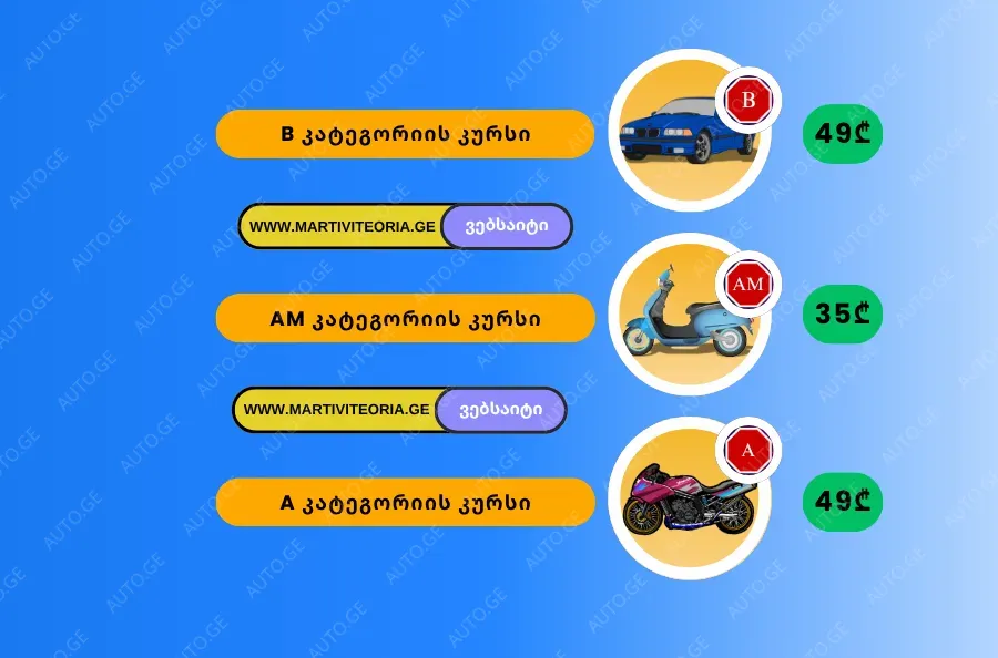 AM კატეგორიის თეორიის კურსის ფასი - 35 ლარი