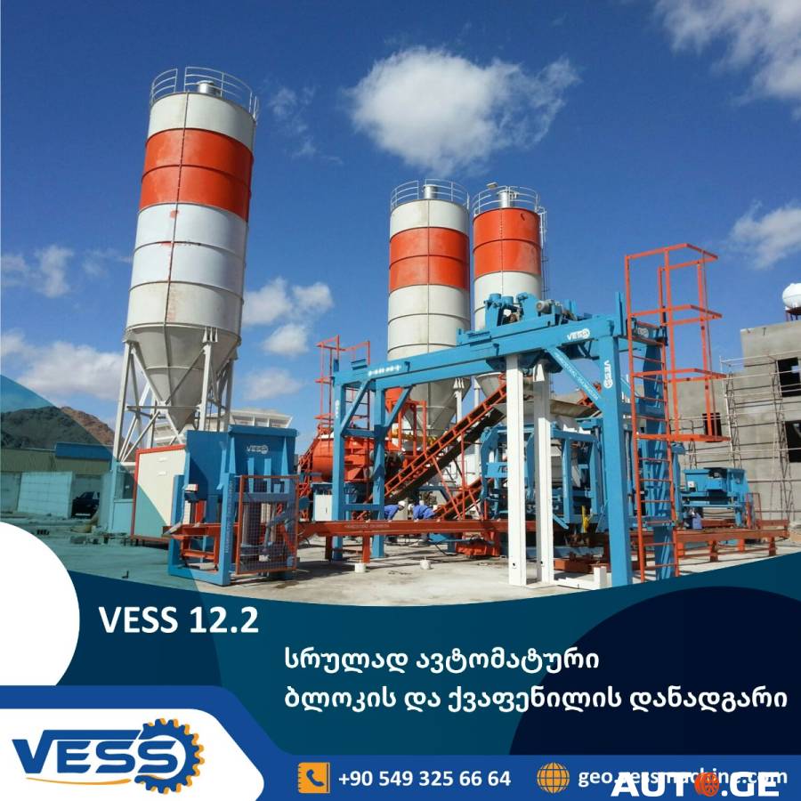 VESS - ის სრულად ავტომატური ბლოკის და ქვაფენილის დანადგარი. TWIN SHAFT მიქსერი / – 1 მ³ მოცულობის.